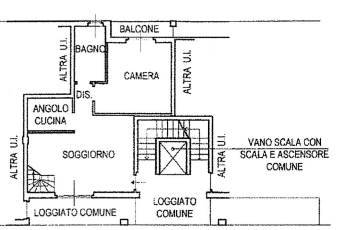 L’ingresso avviene dal ballatoio comune, che funge da passaggio agli altri appartamenti del piano.