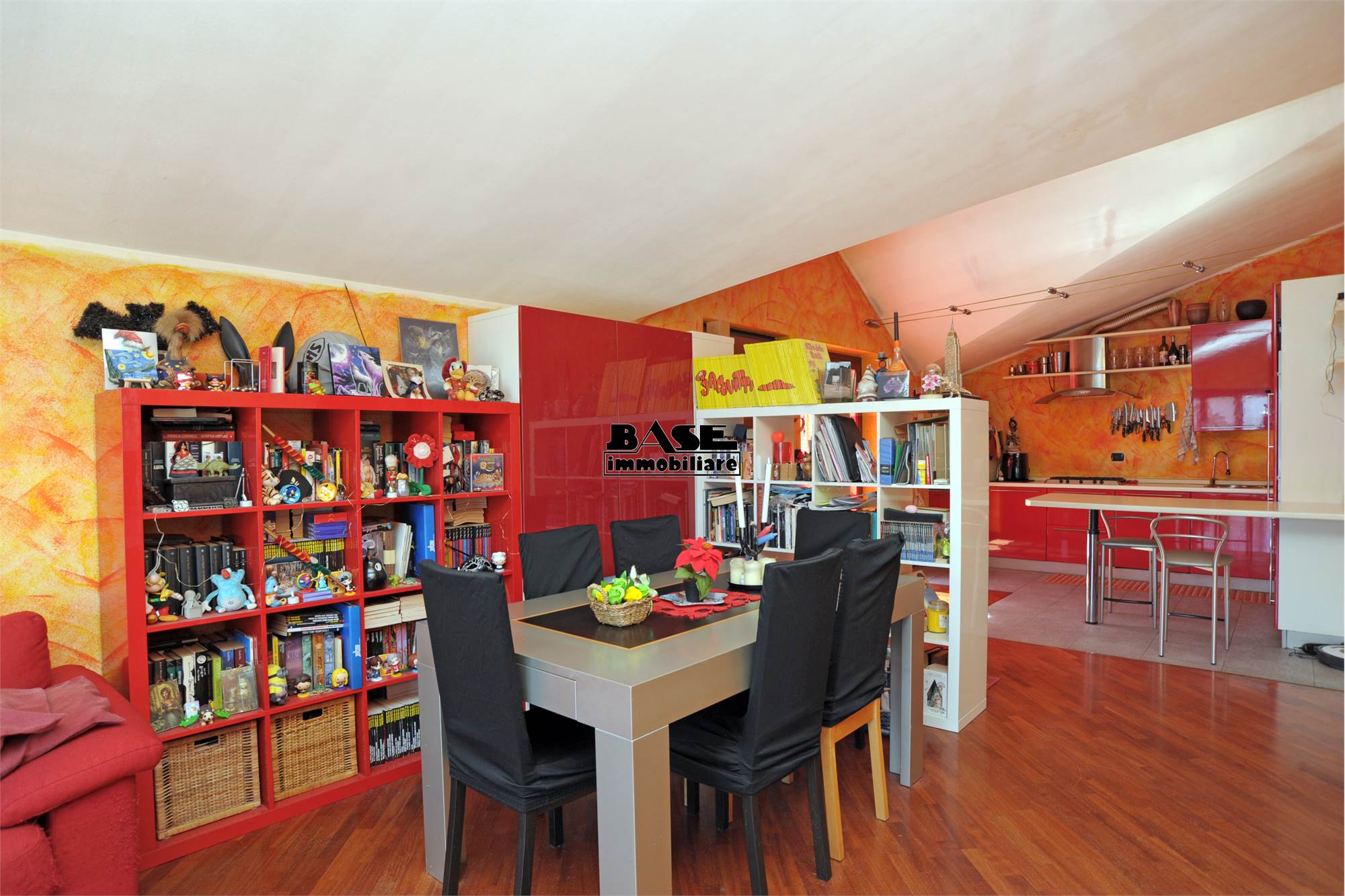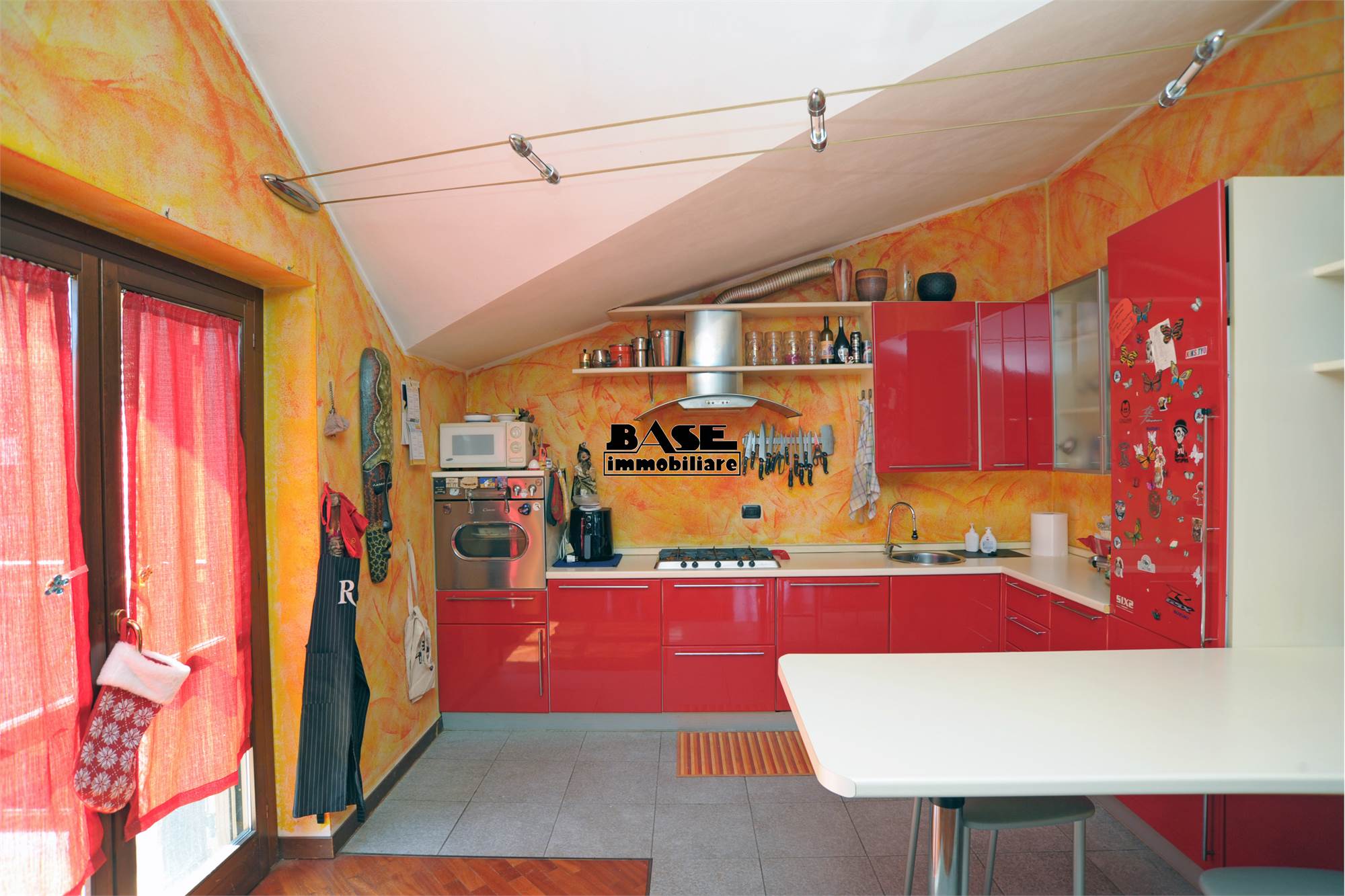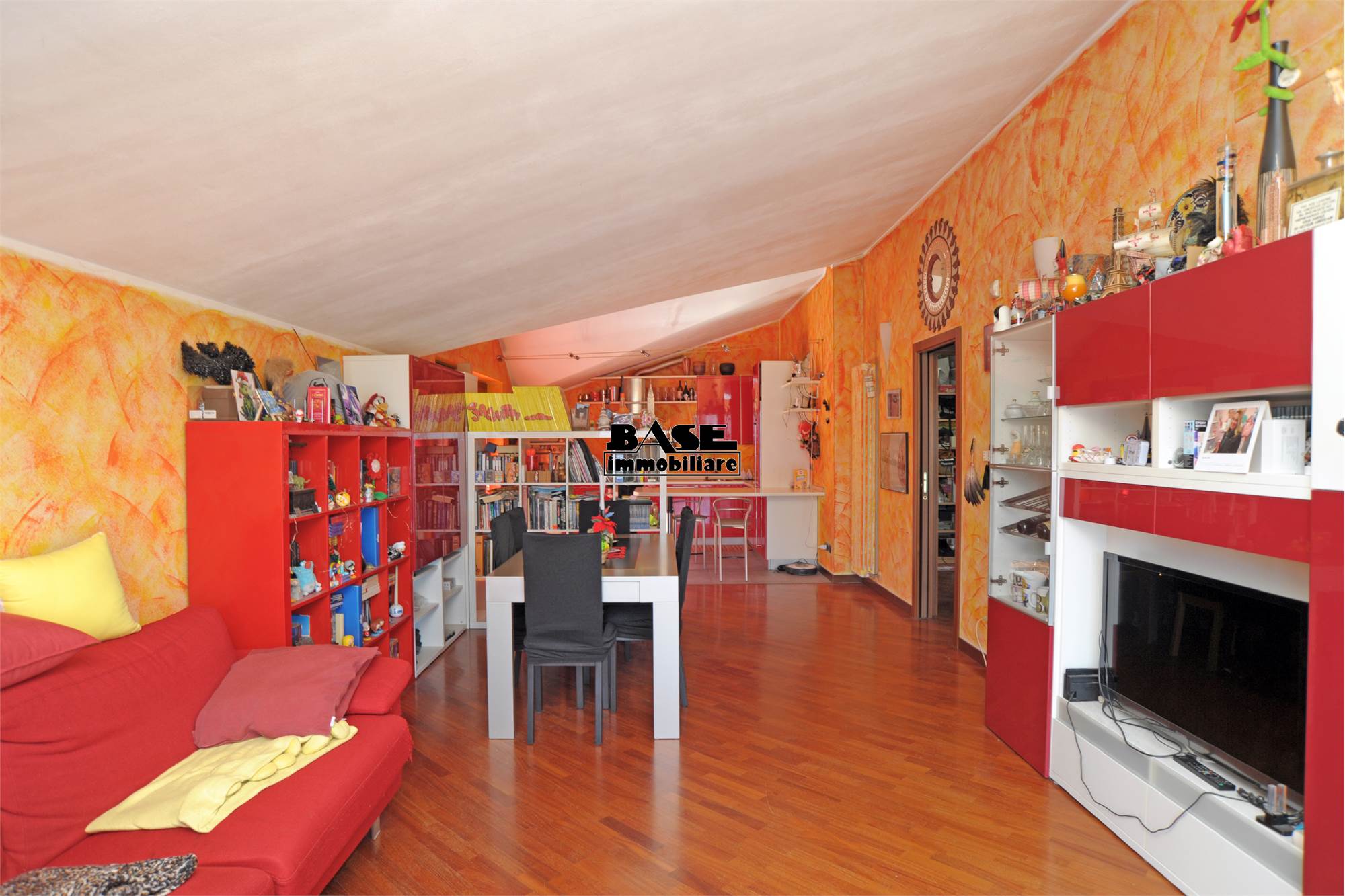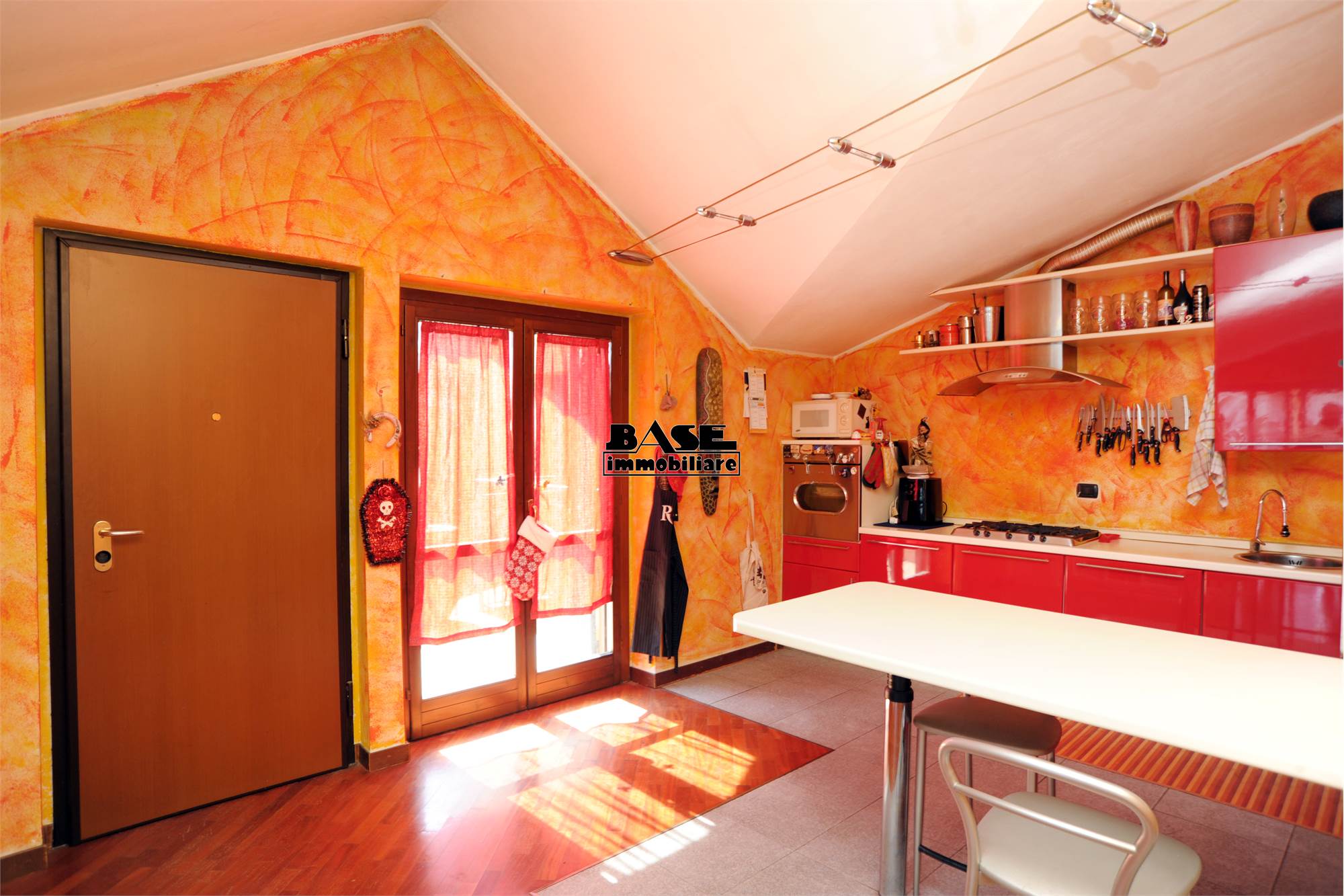 • L'immobile si sviluppa su una superficie commerciale complessiva di circa 95 mq e si compone di ingresso su cucina a vista attrezzata e completa di elettrodomestici e ampio soggiorno con uscita sul balcone. La zona notte offre una camera matrimoniale con balcone comunicante con il soggiorno, una cameretta singola e un bagno finestrato con vasca; caratteristica interessante vista la tipologia mansardata è che tutti gli ambienti sono privi di velux, ma hanno solo finestre ad apertura classica.
