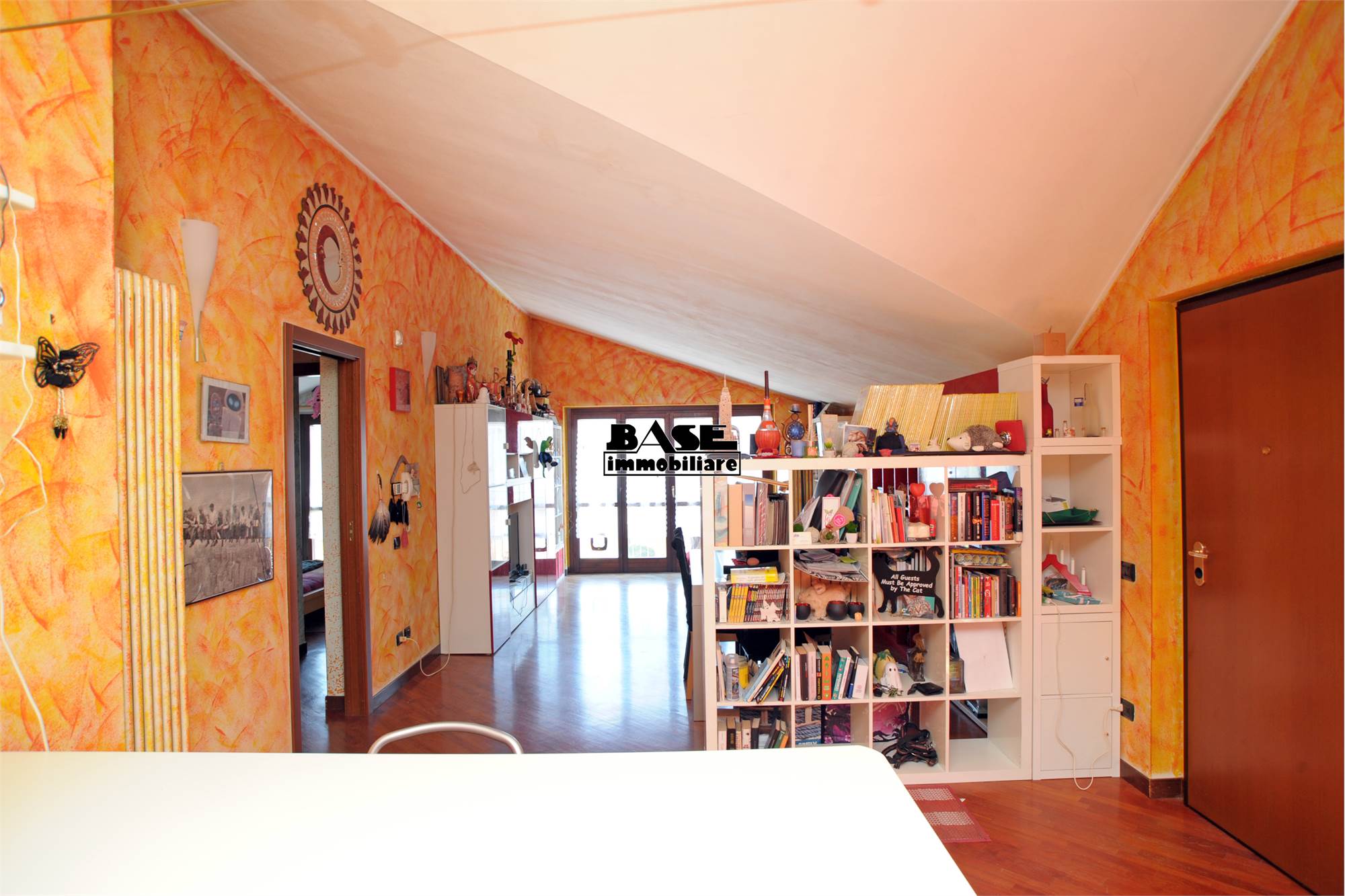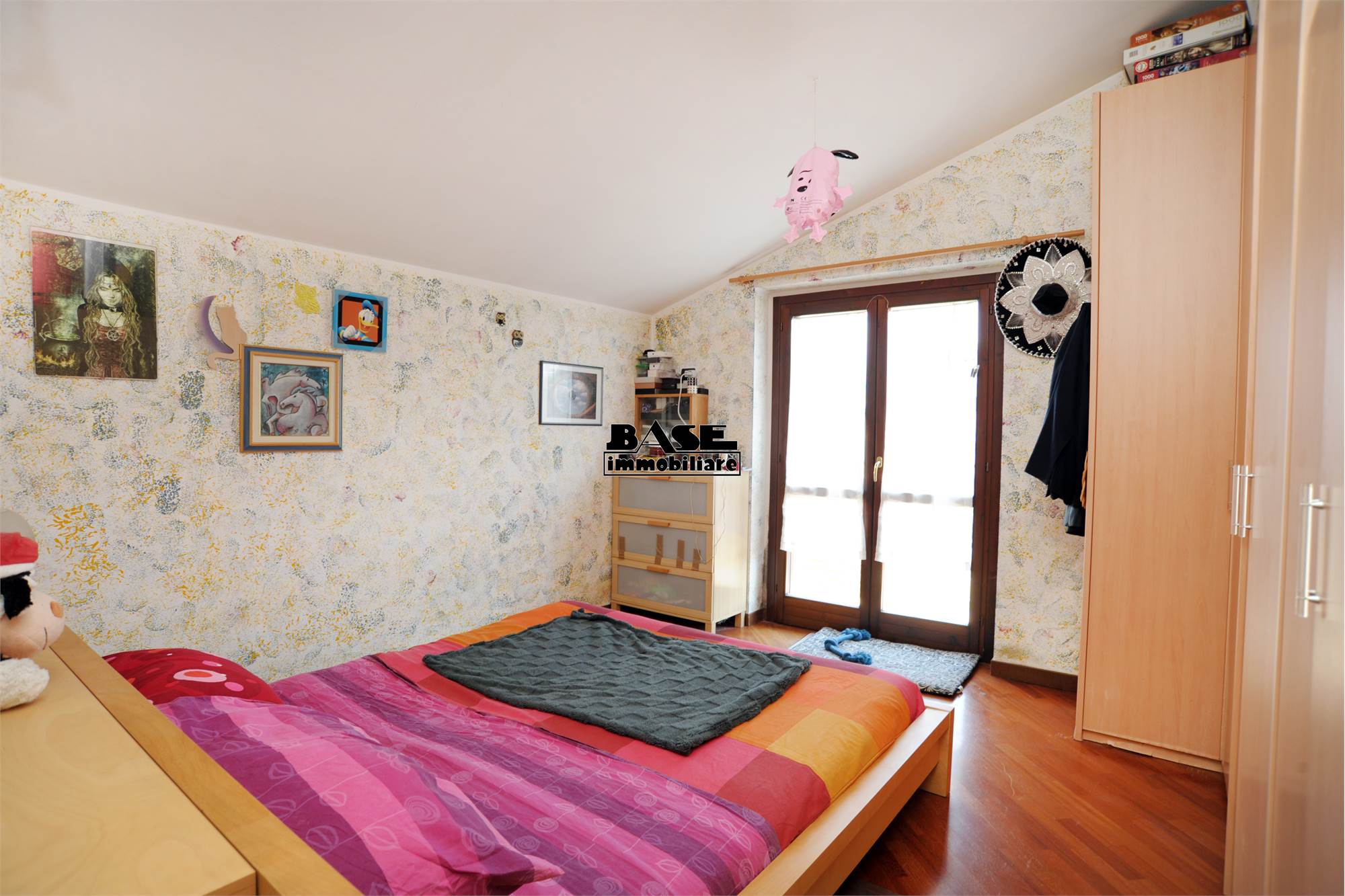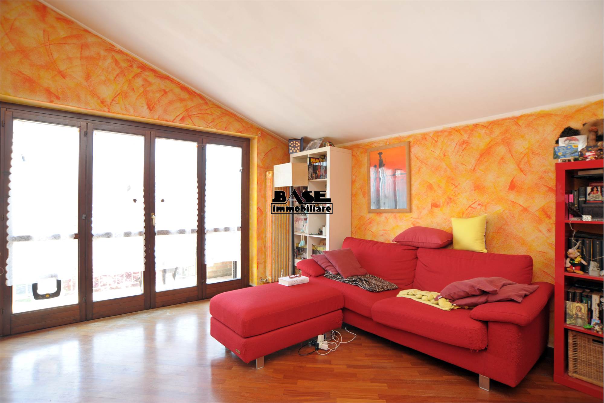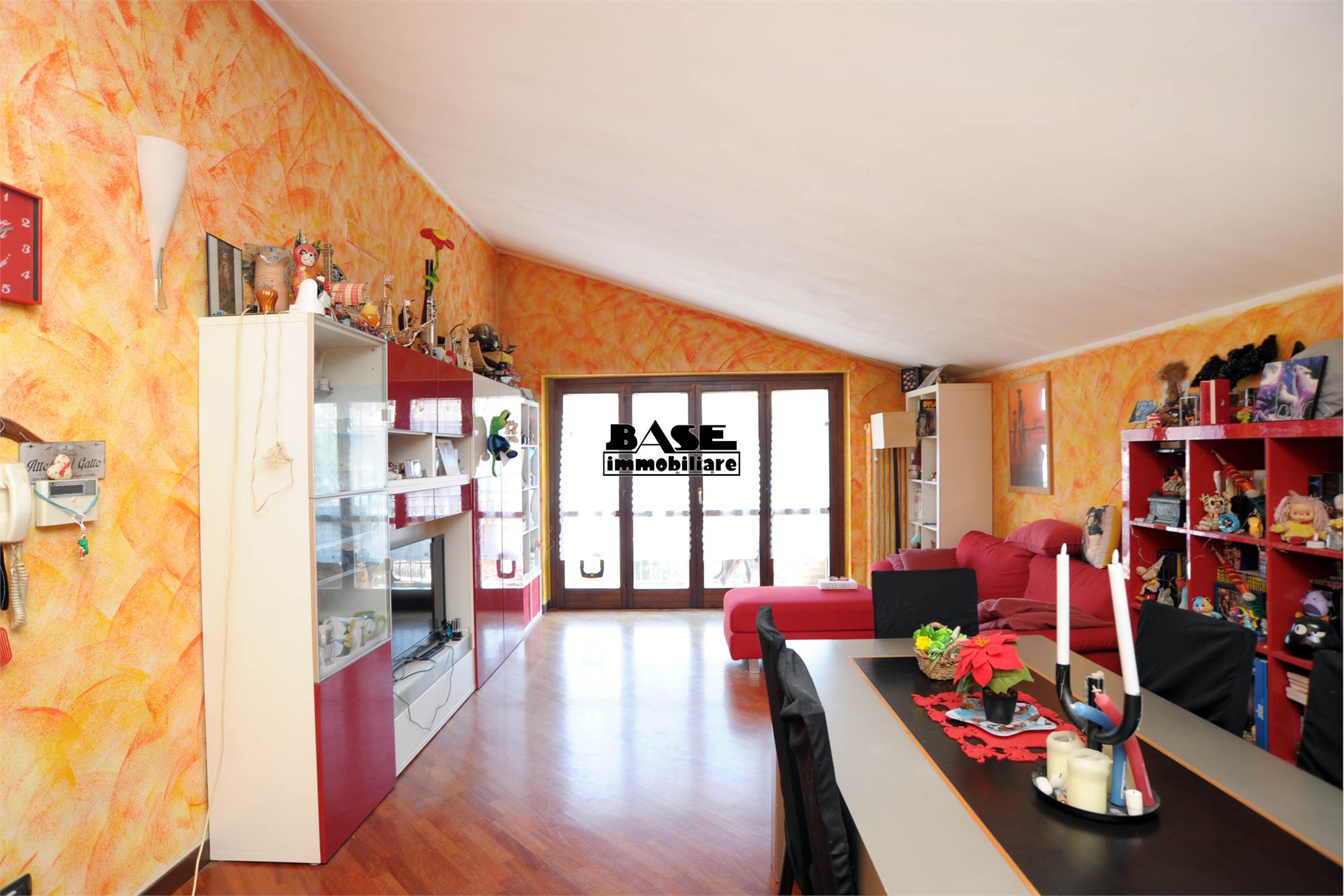 • L'immobile si sviluppa su una superficie commerciale complessiva di circa 95 mq e si compone di ingresso su cucina a vista attrezzata e completa di elettrodomestici e ampio soggiorno con uscita sul balcone. La zona notte offre una camera matrimoniale con balcone comunicante con il soggiorno, una cameretta singola e un bagno finestrato con vasca; caratteristica interessante vista la tipologia mansardata è che tutti gli ambienti sono privi di velux, ma hanno solo finestre ad apertura classica.