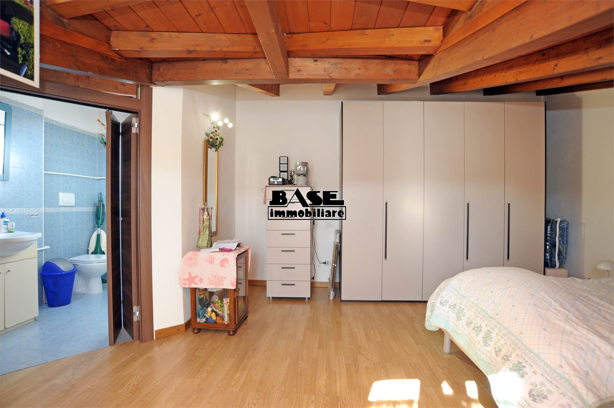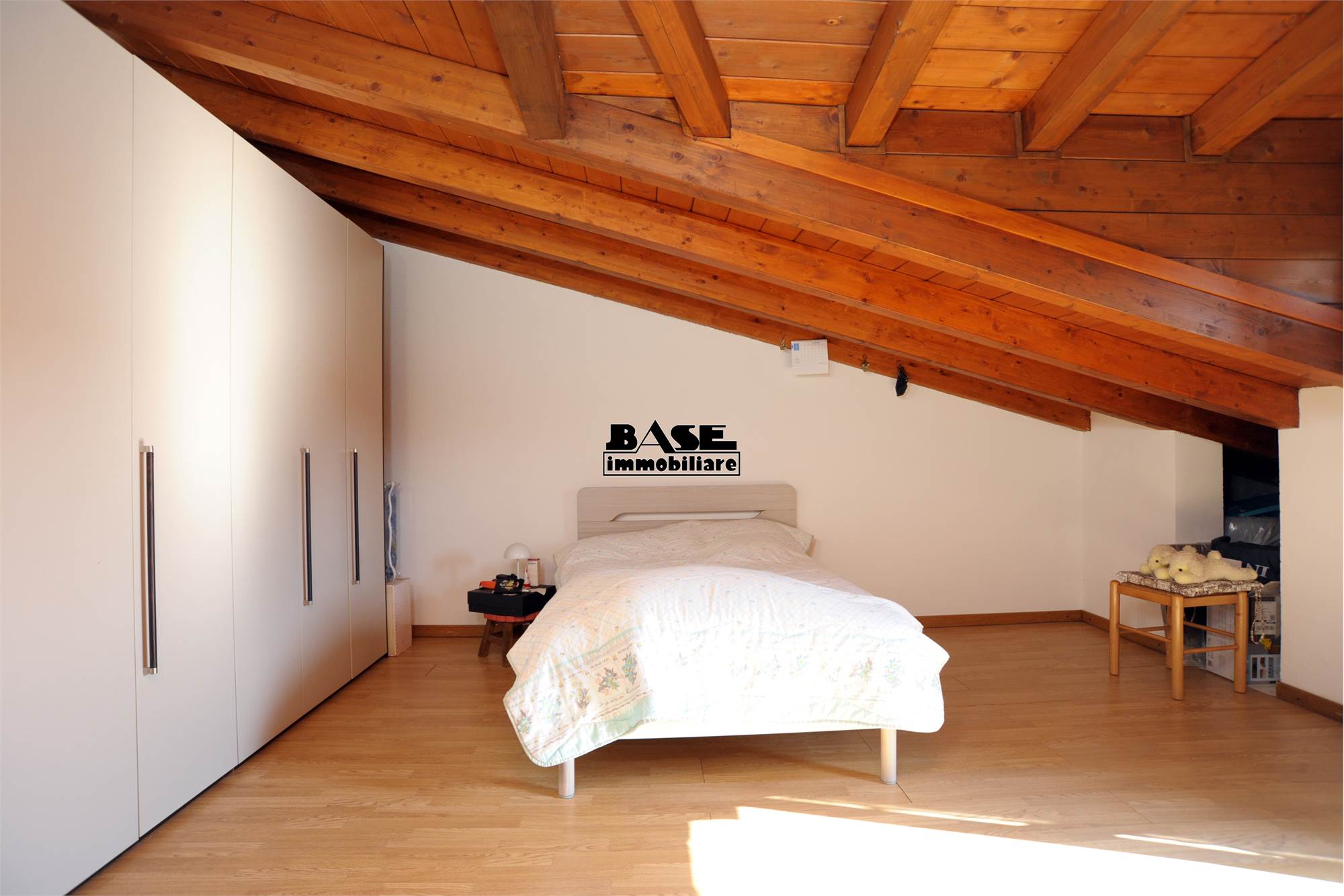 • Il piano superiore ospita la zona notte con un locale mansardato ben sfruttabile; è presente un secondo bagno dotato di doccia. Dalla stanza si accede inoltre a un piccolo balconcino e a un pratico vano ripostiglio ricavato nel sottotetto.